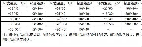 不同環(huán)境溫度適應(yīng)的機(jī)油粘度級別